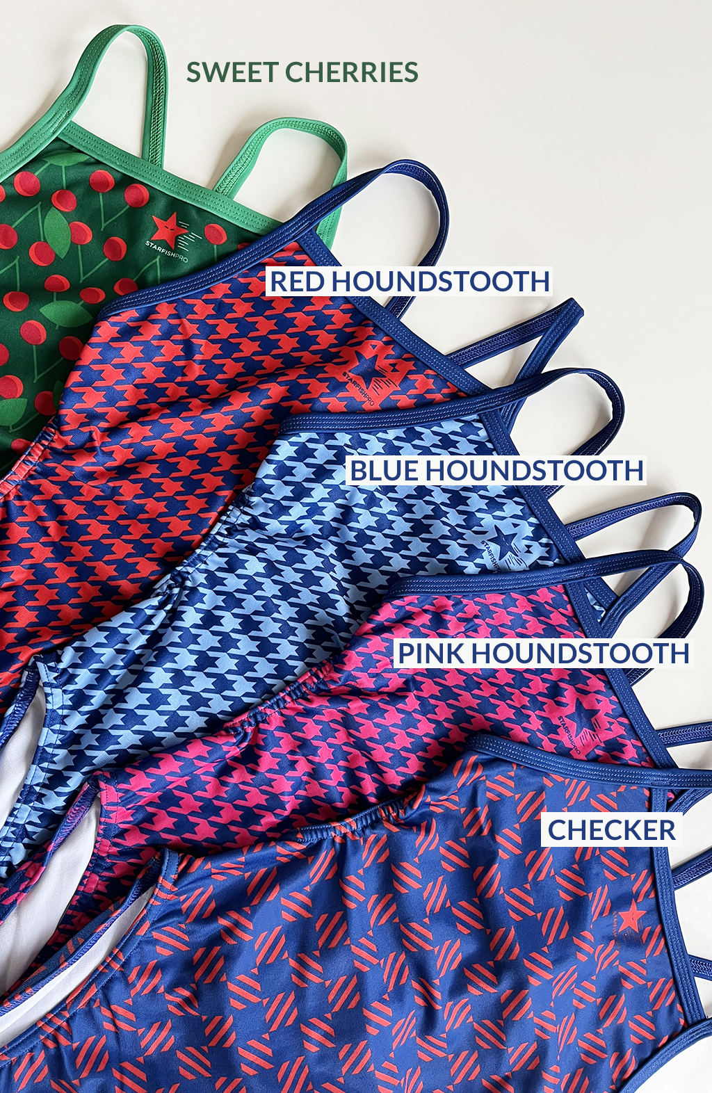 We’re all different and we like different things. Hence, the variety of patterns and colours. We hope everyone’s needs will be met! We want our apparel to brighten up all pools 🙂