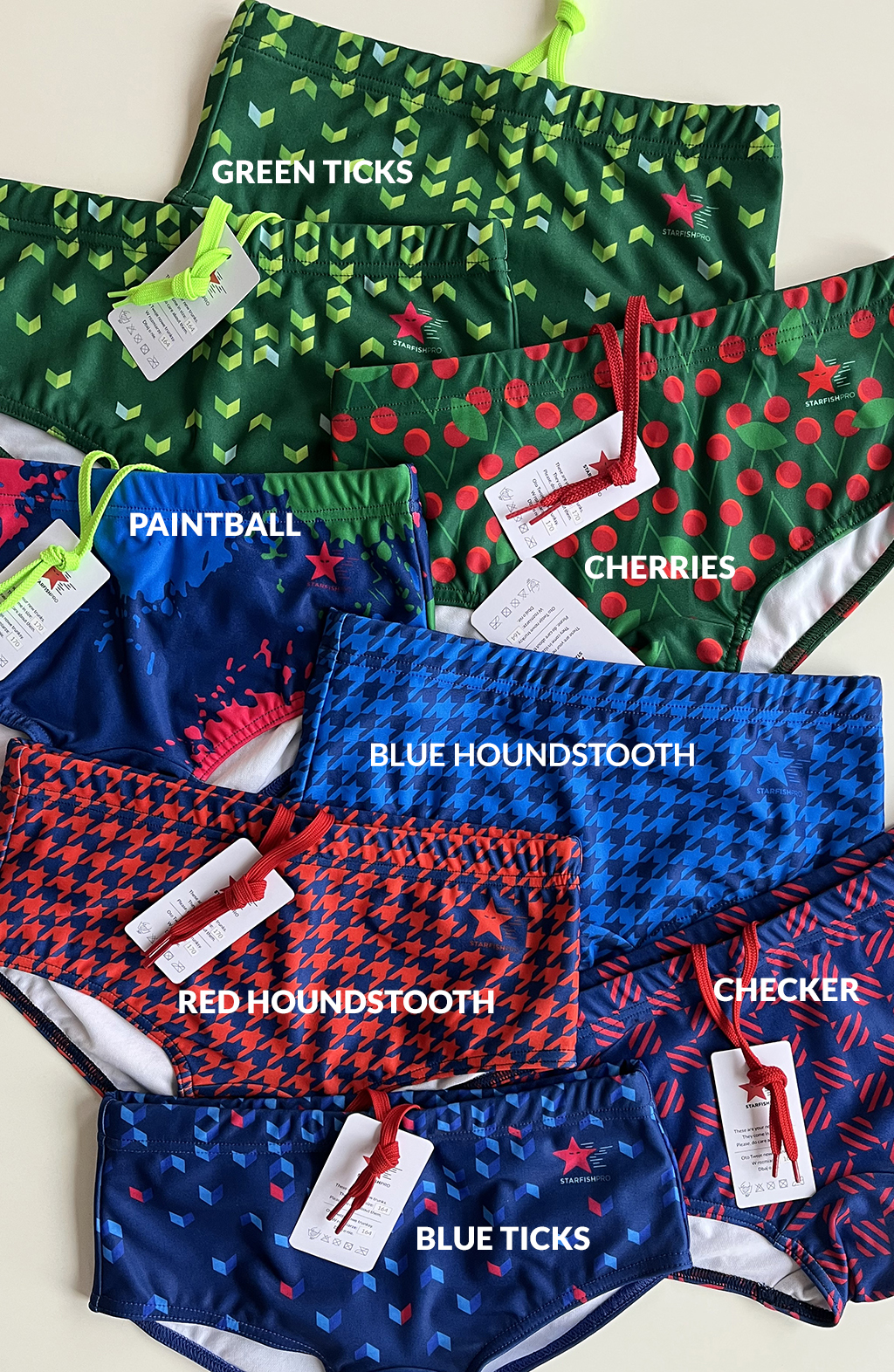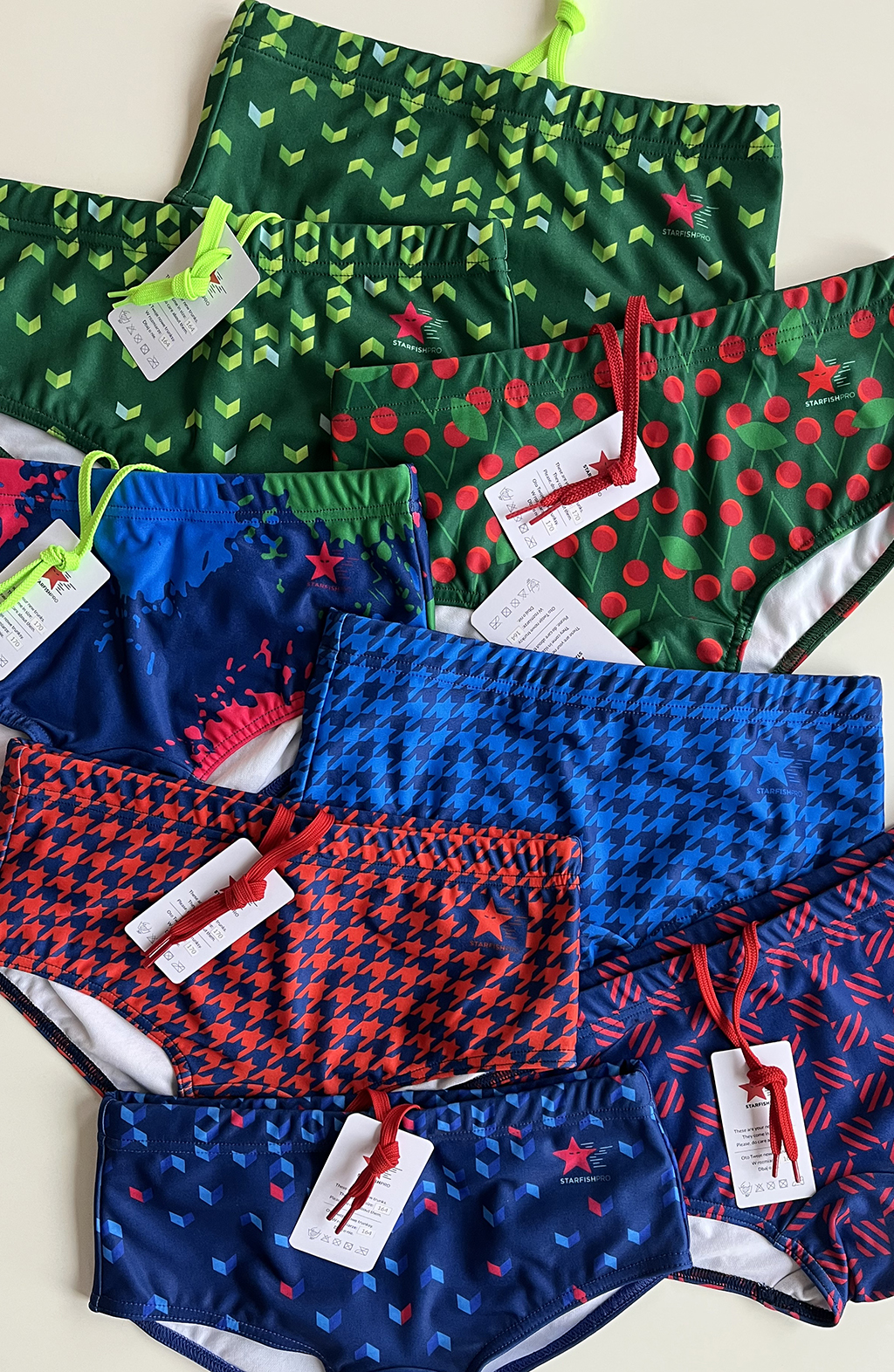 We’re all different and we like different things. Hence, the variety of patterns and colours. We hope everyone’s needs will be met! We want our apparel to brighten up all pools 🙂