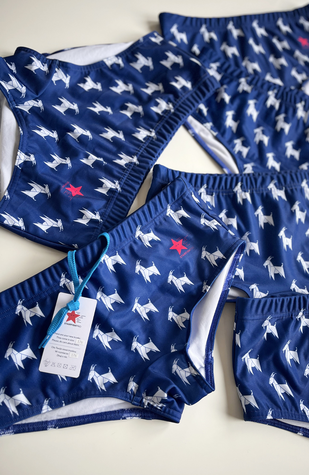 We’re all different and we like different things. Hence, the variety of patterns and colours. We hope everyone’s needs will be met! We want our apparel to brighten up all pools 🙂