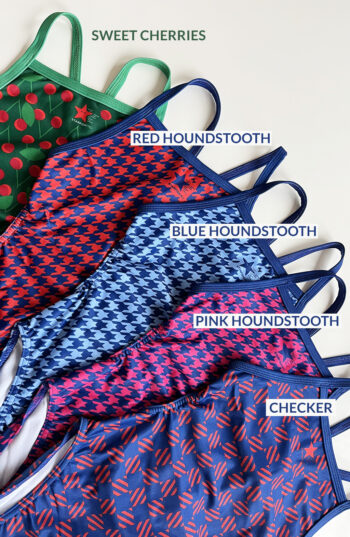 Thin straps, full-edging, medium-high leg, double-layered, cool colour palette. For everyday practice.